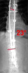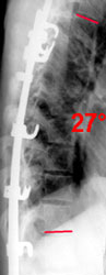 о эффективности операции. Основным количественным критерием при этом была величина коррекции деформации позвоночника по углу Кобба,