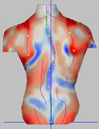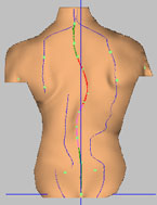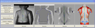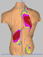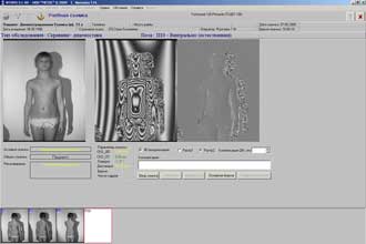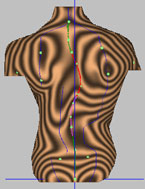 - визуализацию 3D-модели восстановленной поверхности туловища пациента с различным видом текстурной раскраски (см. рисунки ниже) и возможностью просмотра модели под любым ракурсом;